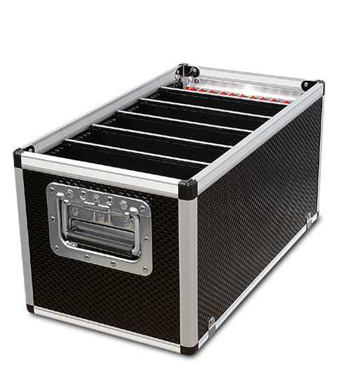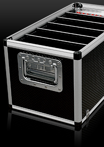 La valigia modello 100 AL è realizzata in alluminio verniciato di colore nero, con angolari in alluminio anodizzato, corredata di 5 divisori per l’organizzazione degli spazi interni. I divisori permettono di utilizzare la valigia per catalogare, separare documenti, brochure, materiale promozionale, campionari ecc. La pratica maniglia in acciaio consente l’inserimento e l’estrazione della valigia nel vano portabagagli posteriore dell’auto.